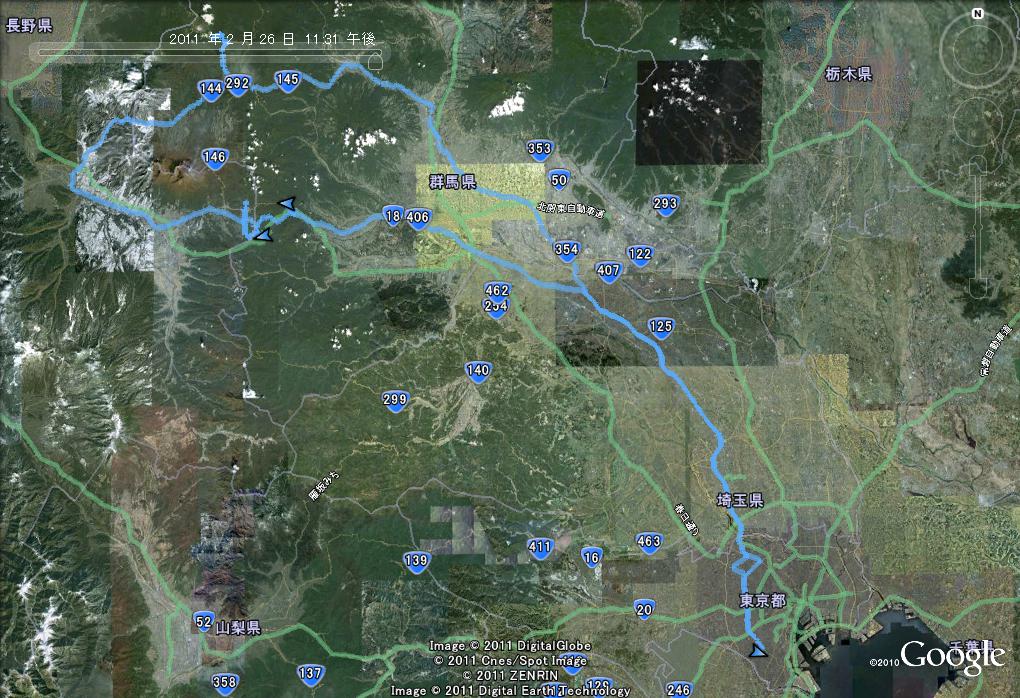 峠の釜飯を食べ終わると再び軽井沢方面へと戻らなければならなかった。凍結気味の路面に注意しながら走行し再び和美峠を越え軽井沢方面へ走行。国道18号線を右折し給油後碓氷バイパスを走行する。(16:09)