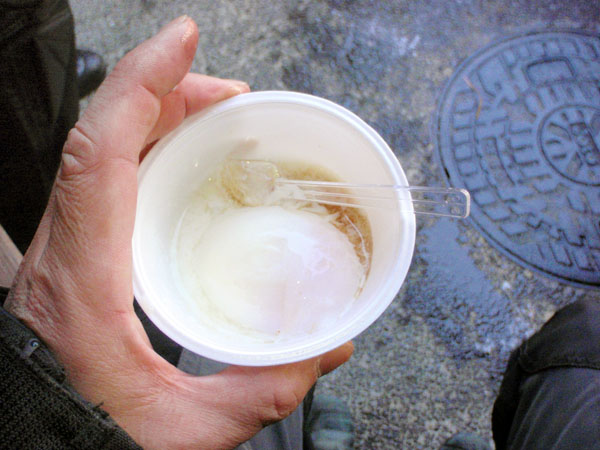 途中で見かけた温泉たまご。yoshiさんが食べたいとの事で一緒に食べる事にした。