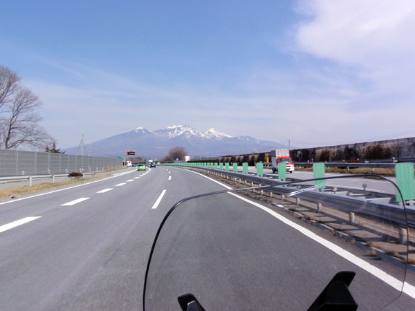 再び中央高速道路を走行。前方には美しい八ヶ岳の景色も見える。この後はノンストップで長野道 松本ICまで走行する。