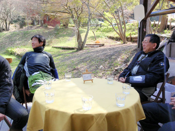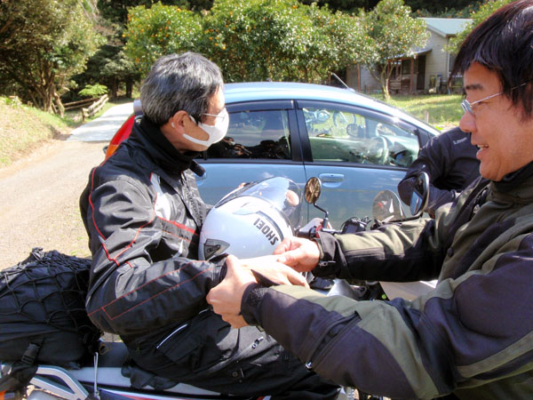 既にボルドーさんが到着しており、お見送り隊としてSATOさんも到着していた。SATOさんとは伊勢神宮ツー以来の再会となる。しかし、久々のオフロードツーにも関わらず今回残念ながら直ぐに帰宅するとの事。次週予定しているyoshiさんのスーパーカブ110慣らしツー(伊豆半島周遊ツーリング)のお誘いをしておいた。
