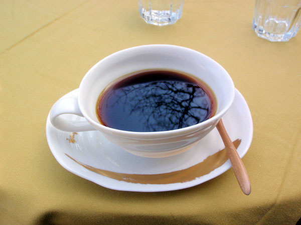 有機焙煎コーヒー(500円) コーヒーカップは加藤登紀子さんのデザインとか。