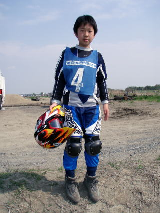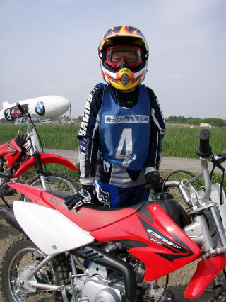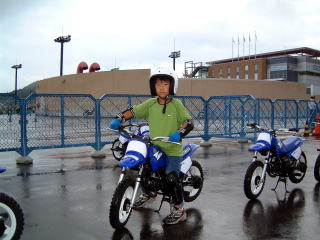 サードクラスではオフロード走行も行います。自分専用のヘルメットを買ってもらって張り切る大貴。