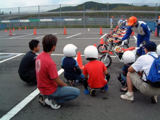 レースとか本格的にバイク乗りを行うのではなく、他の参加者への自己紹介から始まり、レベルに合った指導が受けられます。そして子供と親とのコミュニケーションの場とも言えるでしょう。ちなみに子供だけの参加は不可です。そして付き添う親にはギヤ付きバイクの運転操作が出来る事が必要となります。下手でも大丈夫です。子供と一緒に上手くなりましょう!