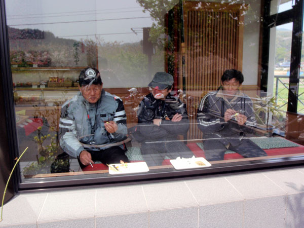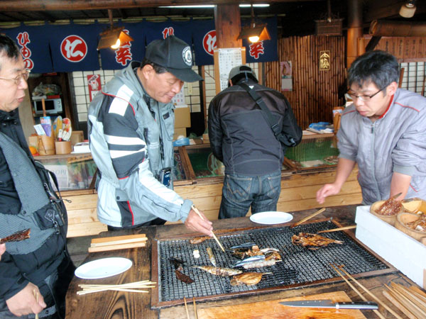 他のメンバーはお見送りの後、この干物屋さんで試食ならぬガッツリ干物を食べ始めた。(笑)