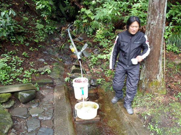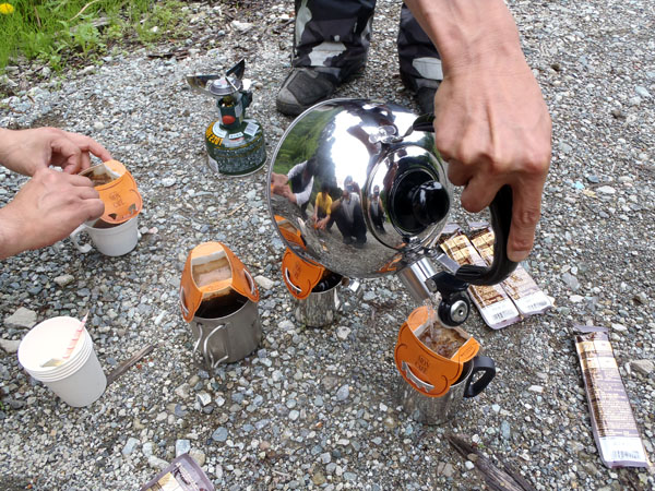 osamuさんはわざわざこの日の為に購入した真新しいヤカンを用意し、皆にコーヒーを振舞ってくれた。名水で入れたコーヒー、本当に美味かったです。ヤカンに写っている我々の姿が面白い。
