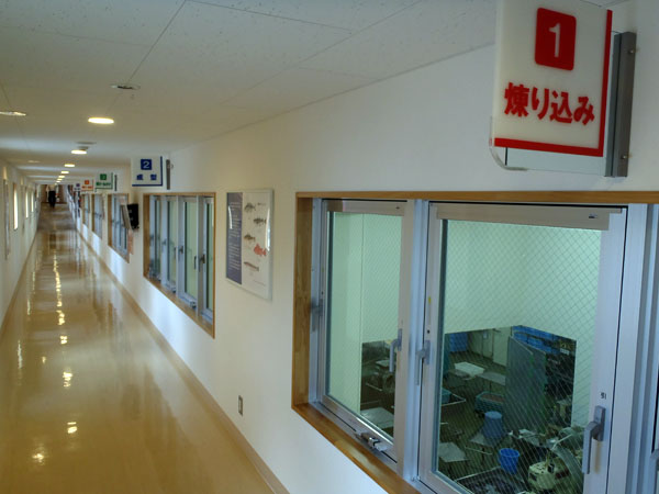 下の写真は工場見学のコーナー。空いています。(^^;)