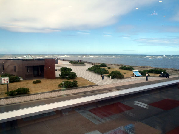 レストラン内から見たノシャップ岬。レストラン内は空調が効いており、涼しくて気持ちが良い。と、言う事は、外は少し暑かったとも言えるのだ。恐るべき猛暑である。