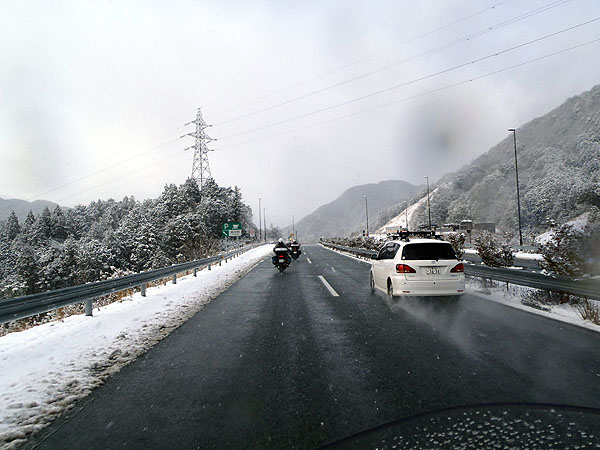 伊勢自動車道から山間部を走行する事となる紀勢自動車道に入った時には、自分でも何でこんな雪を走り続けているのだろうかと自分自身不思議になる位。それにしてもこのメンバー、皆、物凄い度胸と根性を持っていると改めて感心する。