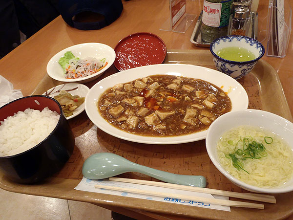 夕食は「浜名湖SA」に立ち寄りレストランにてマーボー定食を食べた。(18:47)