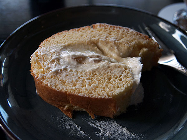 撮影前に一口食べてしまったが、私がたべたのは「くるり」と言うケーキだ。珈琲とセットで550円。和風的な味で美味しい。