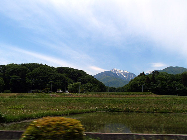 この辺りの景色、まだ山頂付近には残雪も見られ、山の景色が特に美しい。
