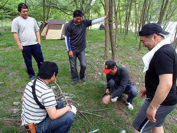 入浴後は一足早くテントサイトに戻り、シンさん、yoshiさん、ちかぶさんなどと交代した。下の写真は宴会場。www