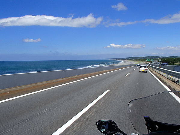 新清水JCT付近まではレインウェアが要らない位の霧雨に一瞬遭遇したが、静岡SA手前で晴れ間が広がった。早朝出発のお陰で高速道路はガラガラ状態。久し振りにクルーズコントロールをONにして道路の真ん中をひたすら走行した。