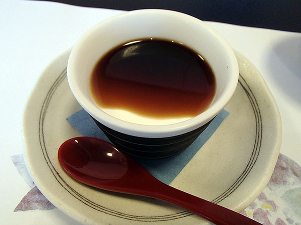 最後のデザートは黒蜜の掛かったプリンで締めとなった。約1時間、お座敷でゆっくり食事を楽しんだ。
