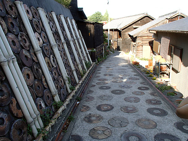 下の写真はデンデン坂。写真に写っている親子が覗いている焼酎瓶の穴の中には何だか意味不明なミニチュアが入っていた。う~ん、期待外れ。この場所もそうでしたが、常滑・・・ 少し観光的に残念な感じもありました。(^^;)