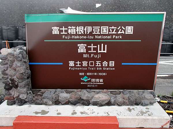 富士宮口五合目(新五合目)の案内板。しかし・・・ 何だかこの案内板どこか変です。
