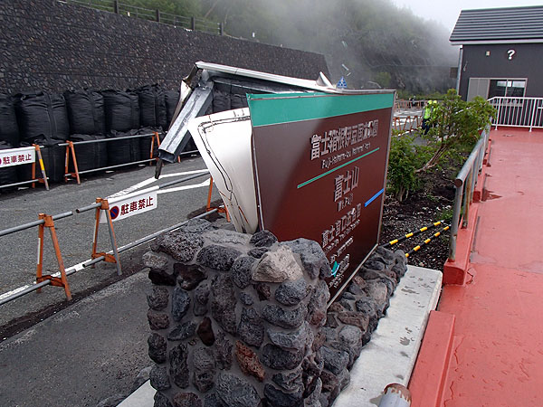 富士山スカイラインの新五合目入口には交通規制について表示がされていた。