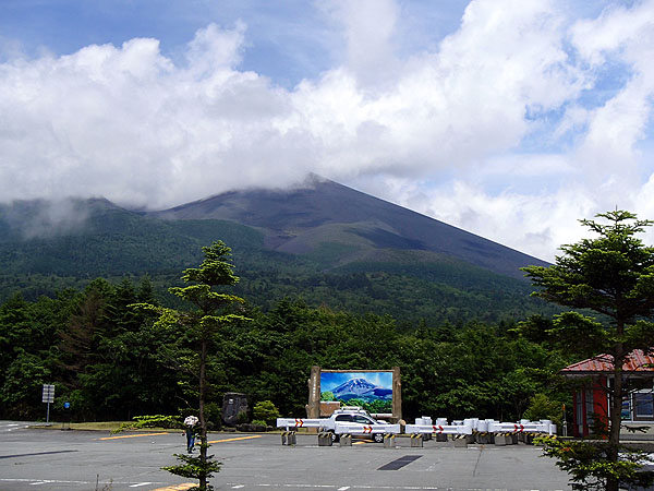 先程まで山頂付近まで見えていたものの、新五合目に到着するとまた霧に包まれてしまった。しばらく待ってみたが回復せず。残念・・・。(--;) ちなみにそこそこ涼しかったが思ったよりは寒くない。