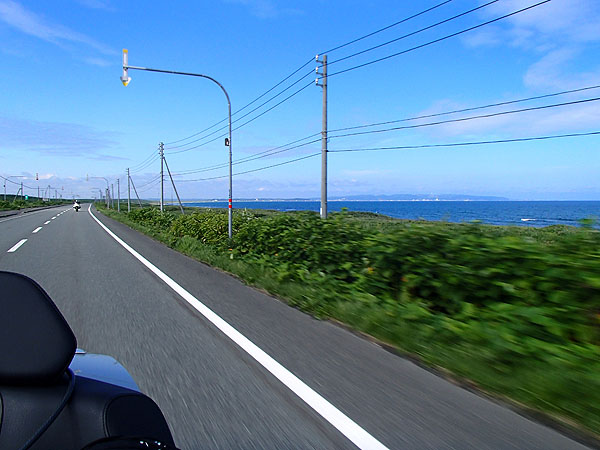 宗谷岬はもう直ぐ、しかし、先頭を走るMk73さん(R1200RT)はさすが地元の方、右折して宗谷丘陵へと進路変更。