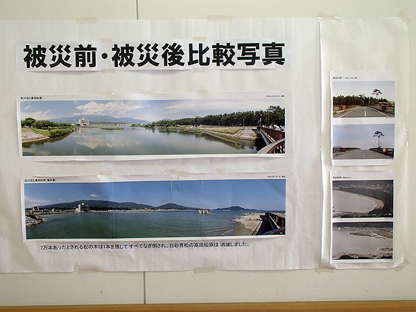 被災地(陸前高田)の比較写真も多数展示され、その被害の大きさを確認出来た。