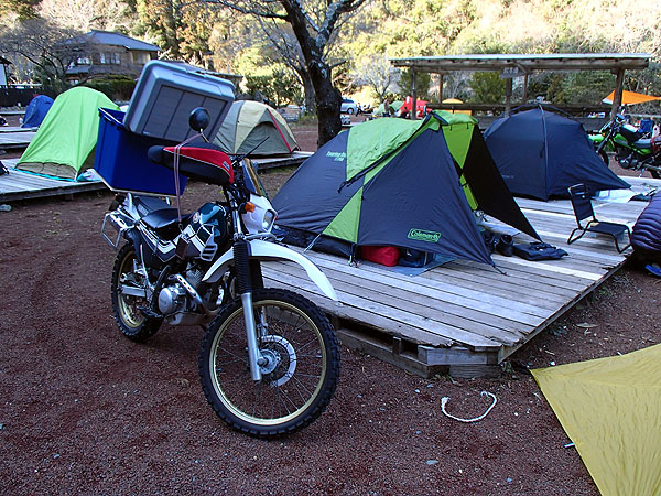 こちらはMAEDAさんのセロー225とコールマンのテント。