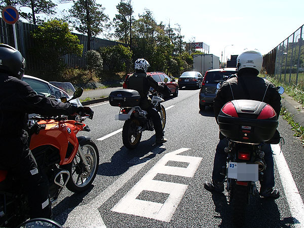 国道14号を走り大宮インター方面へと向かう。既に道路は渋滞気味である。写真を撮り合うOSAMUさんとシンさん。