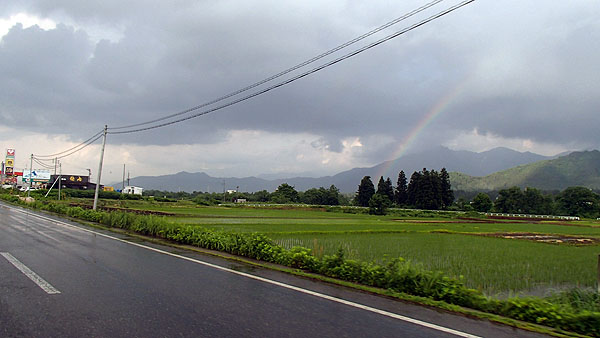 石打付近まで走ると、直ぐ先で雨が降っているのがハッキリ見え、その雨に陽が差し虹が発生し、ハッキリ見えた。(^^) 天気の境目をこれ程実感するのは珍しい。