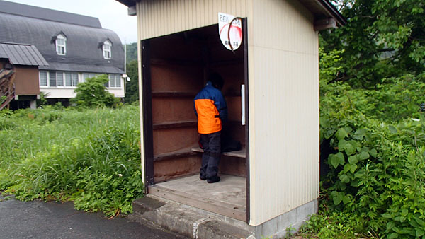 本当は草津で給油する予定だったが、タイミングを逃し渋峠前のガソリンスタンドで給油する。このガソリンスタンドは無人だが、給油する際は隣にあるホテルに声を掛けて人を呼ぶシステムだった。(13:19) もしかして、ここは最高所のガソリンスタンド?(^^;)