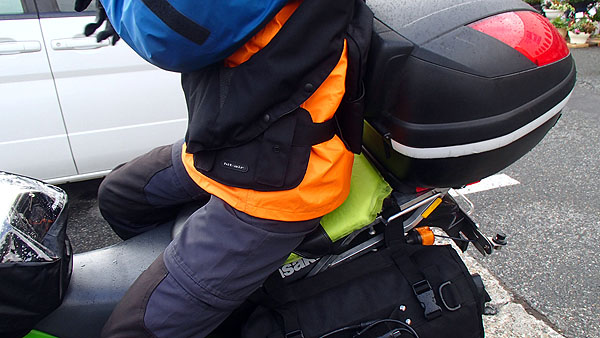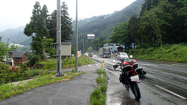 しかし、苗場方面へと走ると雨は止んでいたが前車の水しぶきを少し被るのと、気温が低く、これから山間部に入るので防寒着としてレインスーツの上着のみを着た。