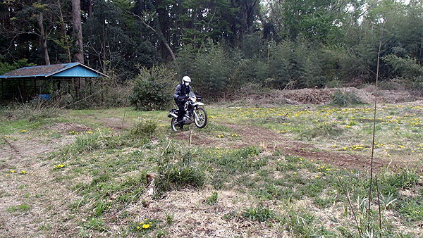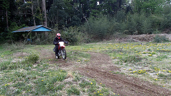 10:20頃、そろそろたけのこ狩りの開始です。竹林の前の広い庭にはオフロードコースが造られています。タンポポの花が咲いていて綺麗でした。