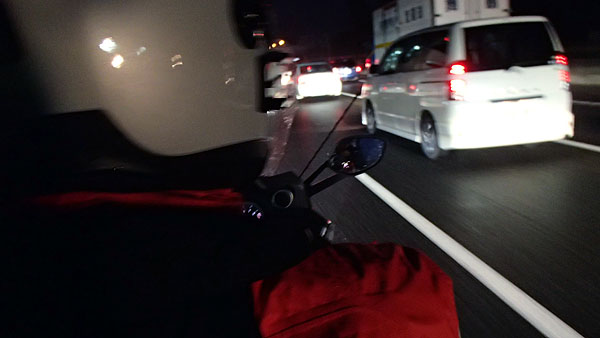 その後、渋滞で酷い目に遭ったのは東名高速道路の岡崎周辺の大渋滞でした。車はクリープ現象でブレーキから足をどかせば人間がゆっくり歩く程の速度で進むので楽でしょうが、クラッチを握る私の左手は疲労でプルプル震えるほどの辛さに襲われてました。しかも、この区間は無理矢理3車線化した、制限速度60kmの車線の幅が極端に狭い区間であり、すり抜けは無理。しかも路側帯すら無い区間。