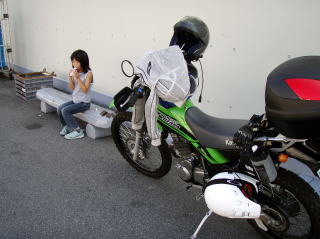 途中、日野市付近でmomoデザインのヘルメットを被った女性ライダーを抜かし、その後も何度か見掛けてはいたが、八王子市内のセブンイレブンに立ち寄り休憩していると、偶然にもその女性がライダーがやって来た。バイクはKawasakiのEstrellaだった。