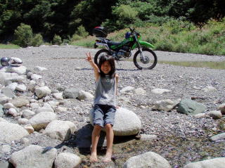 林道走行なので本来は1人乗りで行くのが良いのだが、昨日HK(次女)を連れて行った為、今日の相棒は長女のAK(小3)と言う事になっている。朝6時に起床し、6:20に出発。天気は朝から晴れ、明日からは当分の間秋雨前線の影響で雨続きとの事で、今日はバイク乗りにとっては秋の長雨直前のツーリング日和とも言える日だった。