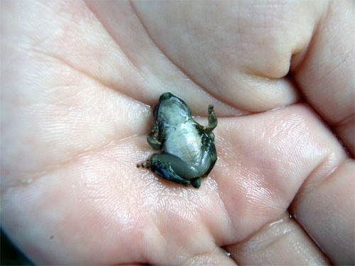 娘の友達の中には蛙が好きな子が居るらしく、蛙をひっくり返すと動けなくなると教えてもらったそうだ。早速小さい蛙を見つけ手のひらでひっくり返して見せてくれた。「どう?お父さん、動かないでしょう?」と娘が喜びながら蛙を乗せた手を差し出す。