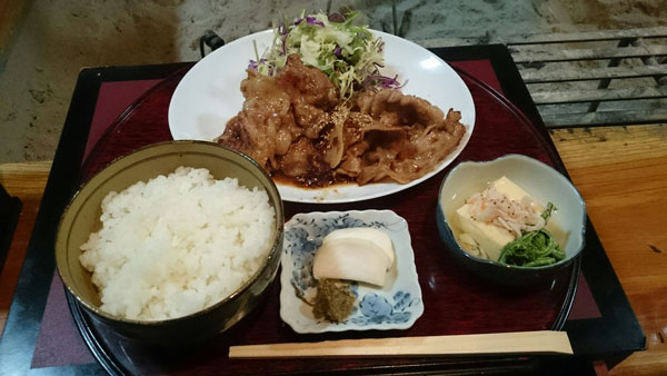 ここでゆっくり温泉に浸かりました。そして早めの夕食もこの温泉施設内の「和洋亭 宇田」で食べる事にしました。私が食べたのは白馬豚の生姜焼定食です。
