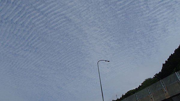 この頃から急に風が強くなって来ました。空を見上げると、何だか珍しいと言うか気持ち悪い様な雲の形が見られました。(15:10)