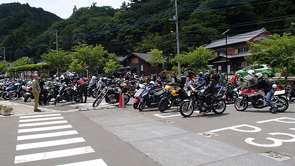 道の駅「道志」に到着しました。(8:48) ここでもバイク専用の駐車スペースが満車状態でした。