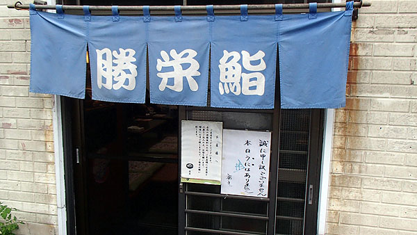 「勝栄鮨」です。開店時間前に到着。勿論1番目のお客となりました。(10:43)