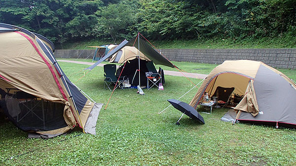 キャンプ場には早めに戻り、私もゆっくり休みました。ちなみにバイクは林道手前の広い駐車場に停めました。リスクは可能な限り回避です。(^^;) キャンプ場は薄日が差していますが、もう少し南の方では雨だった様です。