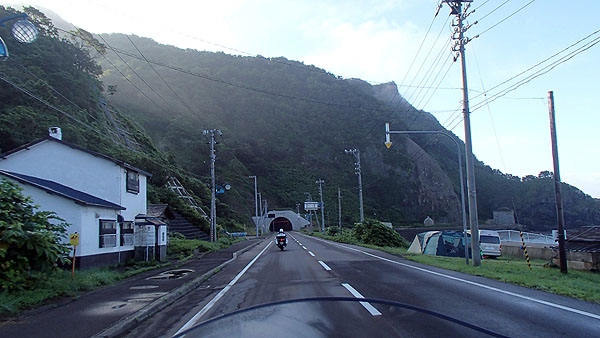 南下してニセコ方面へと向かいます。路面はまだ濡れている所が有りました。こちら杯野営場から少しだけ南に位置する泊付近は雨が降った様です。