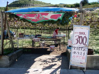 塩山方面に走行中、目に付くのはぶどう畑である。今年の夏は結構ぶどうを食べたのでそれ程食べようと言う気にはならなかったが、娘と会話をしながら走っていると「ぶどう一皿300円」の看板が目に留まった。300円だったら食べてみようかなと気が変わり、立ち寄ることにした。
