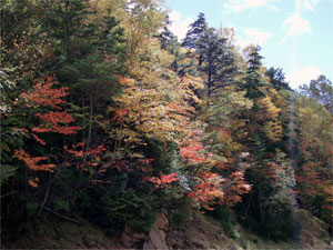 一度国道140号線に戻り1つトンネルを抜け、県道210号線「杣口塩山線」に入った。ここからまた永遠と続く昇り坂だ。途中ブラインドコーナーでもやたらと対向車線に大幅にはみ出すマナーの悪いベンツを抜かし川上牧丘林道に入る。この道に入るとバイクの姿を良く見かけるようになった。オフ車だけでなくスーパースポーツも多い。 前を走る車は皆親切で、道を譲ってくれるのでストレス無く順調に進む。山頂付近は紅葉が進み、所々美しい木々が見える。 しかし、標高が上がれば上がるほどだんだん寒くなってきた。