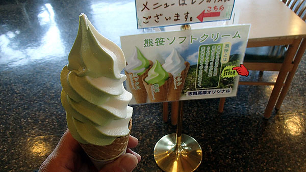 ドライブインでは熊笹ソフトクリームを食べました。少しでも売り上げに貢献しないとね。(^^) 美味しかったです。