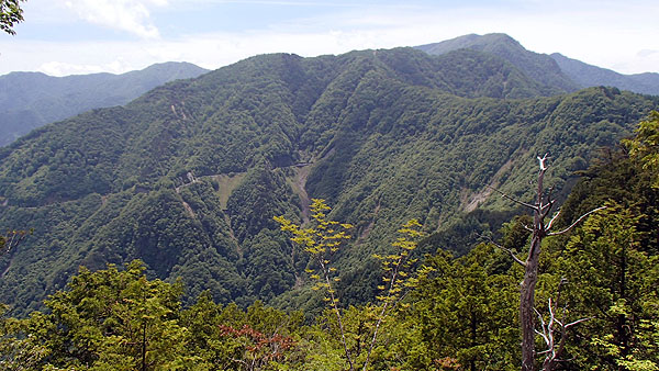 ところで、国道299号線は途中で新しいトンネルが完成し、更に秩父までの距離が近くなった感じがしました。下の写真、武甲山が見えて来ました。(7:34) 武甲山では石灰石の採掘が行われており、周辺の新緑に覆われた山々に対し、この山だけが岩肌を露出しているのでとても目立ちます。