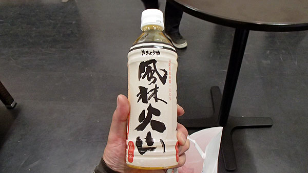 そして喉が渇いたのでこちらも購入。緑茶のペットボトルです。ラベルは風林火山でした。(100円)