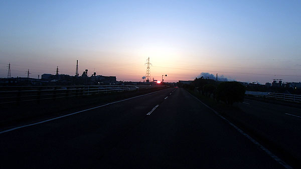 仙台手前で朝日が上り始めました。(4:42)