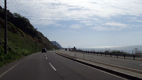 前方に雪を被った山が見えました。(9:28) 鳥海山ですね。この季節の山々は雪が残っているので美しいですね。