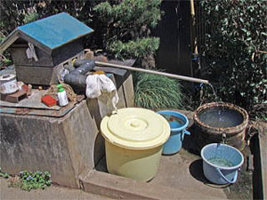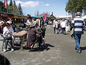 秩父に近づくにつれ渋滞は激しくなったが、バイクは渋滞する車を横目に前へ進む事が出来た。案内板を見ながら羊山公園を目指し、バイク専用の駐車場として場所を提供している民家にバイクを停めさせてもらい羊山公園へ徒歩で向かった。途中、桜が満開の木や、湧き水を利用した洗い場を見ながら坂を上り羊山公園に到着した。