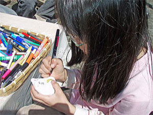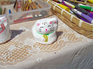 仕方なくその後はまずカキ氷を食べ、次にイチゴのシャーベットと矢継ぎ早に好きな物を食べさせた。すると今度は「はりこの絵付け」が出来るお店を見つけ、やってみたいというので思い出にとやらせてみたりもした。