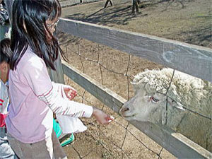 ここに居る羊、草をやろうとすると物凄い勢いで近づいてくる。この仕草がとても可愛らしい。ひかりもしばらくの間草をやって十分楽しんでいた。